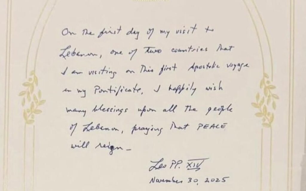 وجّه البابا لاوون الرابع عشر كلمة مكتوبة للّبنانيّين، في السجلّ الذهبي للقصر الجمهوريّ، جاء فيها: